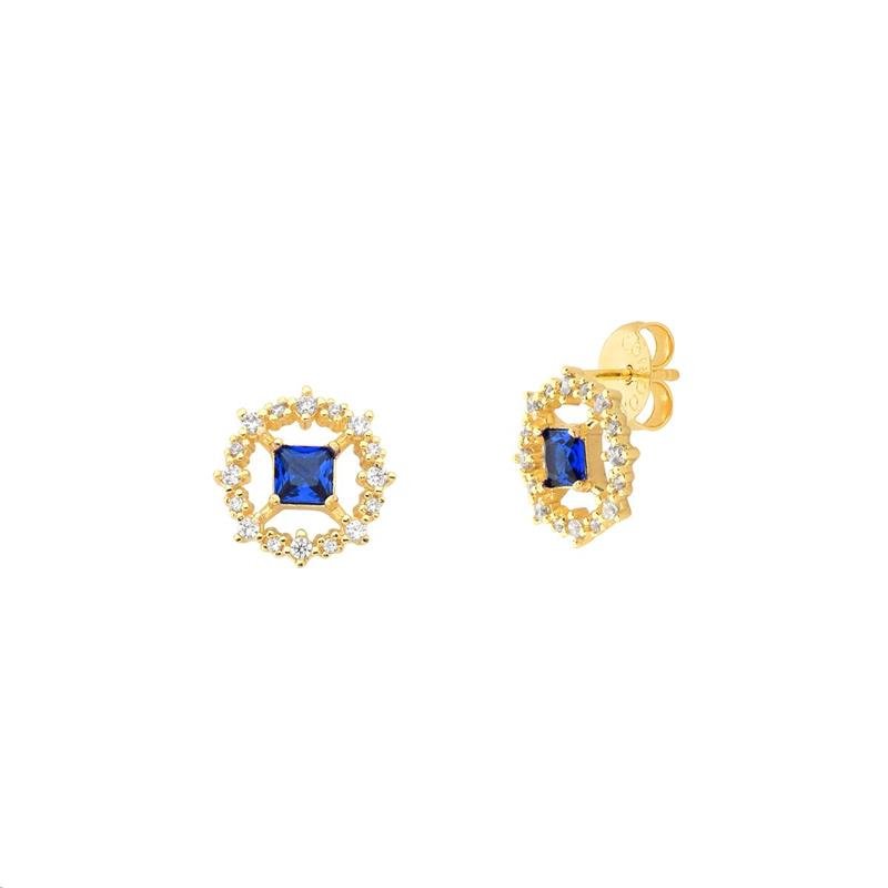 Coleção:Acabamento: Metal, 02 pedras de zircônia carre 4 X 4 mm azul safira,16 pedras de zicônia redonda 1,50 mm cristal e 16 pedras de zircônia redonda 1,00 mm cristal.
