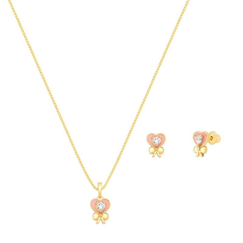 Coleção: Acabamento: Metal, 03 pedras zircônia coração 3 X 3 mm cristal e esmalte rosa claro. Altura: Largura: Peso: Referência: 034280 Produto antialérgico, livre de níquel e cádimo