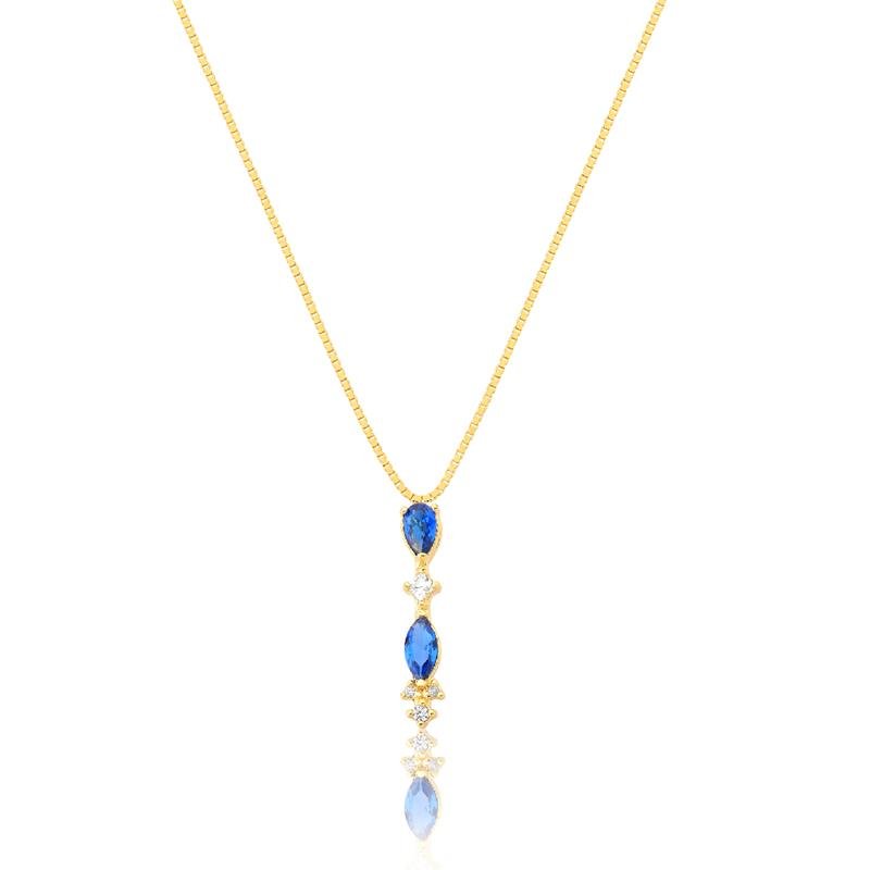 Coleção:Acabamento: Metal, 01 vidro lapidado navete 3 X 6 mm azul safira, 01 pedra vidro lapidado gota 3 X 5 mm azul safira, 01 pedra zircônia carre 2 X 2 mm cristal, 01 pedra zircônia redonda 1,50 mm cristal e 02 pedras zircônia redonda 1,00 mm cristal.